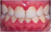 Gengivas vermelhas, inflamadas e sensíveis com tendência de sangramento quando escovadas;